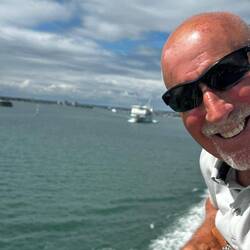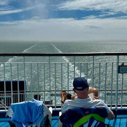 Now, at cherbourg Port waiting to board with sea mist, so don't think we'll be on the deck it's a big chilli.
