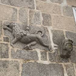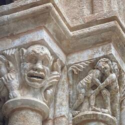 Unfortunately most of the Romanesque is gone, except for the outside doorway. Baroque is what predominates in the church. But he showed me a 12C carved stone in one of the walls that said— “Here are the relics of (I think) Peter, Paul, Santiago, and Tomás.”No one knows whether there really were relics or what happened to them.