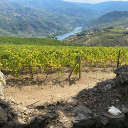 The vineyards are still bright green, and white houses with orange tile roofs are sprinkled throughout. The hills extend in all directions and at all angles. Most are planted with grapes, but there are a few patches of olive trees and even - gasp - a few eucalyptus. The last four or 5 km into Mesao Frio were on a very untraveled road with spectacular views of the river up and down. I have been to the Douro four or five times as a tourist, but I have to say I have never felt as overwhelmed by the beauty of it all as I did while walking in it all day