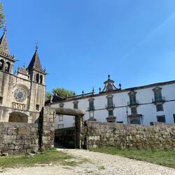 As I was reading the Romanesque literature I had picked up in the fancy hotel, I read about the monastery of Pombeiro. The caminho goes right by it, but it would be totally closed up early in the morning.