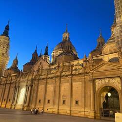 My hotel is very close to the basilica, which commemorates the appearance of the Virgin Mary to Santiago in 40 A.D. I dropped my backpack off at about 12:30 and spent the next couple hours walking around the historic center — visiting the Roman sites (Forum, baths, and theater), admiring a couple of mudéjar churches, and walking along the river. Since it’s Sunday, there are tons of people out and about, walking, sitting in plazas, drinking vermouth, playing with their children.