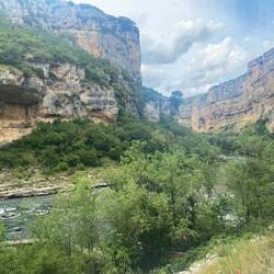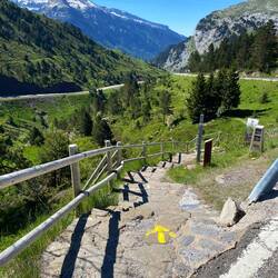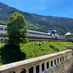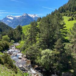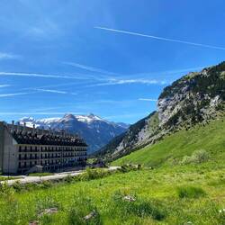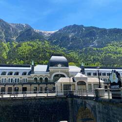 I am so ecstatic and very relieved to write that I made it and loved it, landslides and all. I left at 6:30, and at 11, I was in Spain. For me, the much harder part was the descent to Canfranc Estación. All downhill, half as many kms, and it took me more,than two hours. I have to be really careful with my knees, stepping sideways most of the time. I go very slowly.