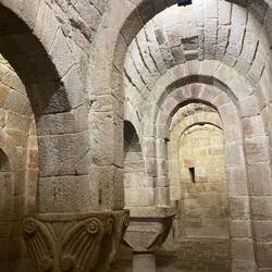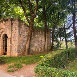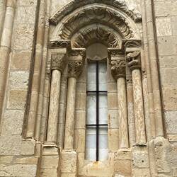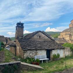 From the church, I headed to the parador, which is in an old monastery. I had a very good learning session with Mapy, after adding a few kms onto my walk. But it was a great day for walking, with total cloud cover and expansive views in every direction. When I got to the Parador, I saw a sign pointing towards another Romanesque church. The woman at check-in said it was about 2 km away, so I dropped off my pack and headed out to see it. San Pedro Quilchano. It was a very nice walk, but the church was pretty much in ruins. There were two beautiful windows, but that was it. Oh well.
