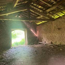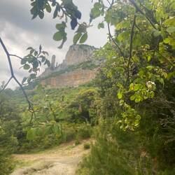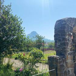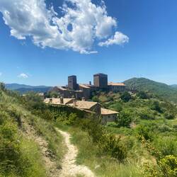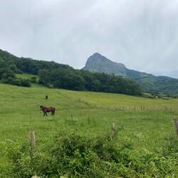 The walk was glorious. Cool and sunny, what could be better than that! The ascent was steady, but not so steep that it felt like climbing stairs. Just a good continuous ascent. The path goes through lots of old farmsteads, which are now abandoned, through lots of forest, and when you break out into a meadow— there are the Pyrenees right in front of you!