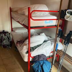 I arrived in the small town of Urdos, which now has two closed hotels and one small open hotel. There is also a pilgrims’ Albergue, but I opted for the hotel. I did get my first stamp, and also met the man who runs the the pilgrims’ gite, along with the man who is taking it upon himself to remark the route after last year’s landslides. They tell me it is all walkable now, no need to take a detour on the extremely narrow road. For that, I am very grateful.