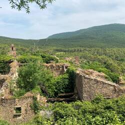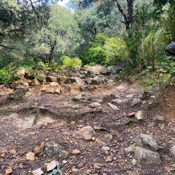 Though the dolmens were extremely fun to see, the trail itself was, shall I say, a challenge. It took me a long time to find my way, because there were very many sections of total overgrowth. Lots of sections across rocky outcrops that would have given someone with vertigo pause. But I made it, very slowly, and by 4:30 (yes that’s 9 1/2 hours after I started out!), I was sitting in front of a monastery, waiting for someone to come let me in.