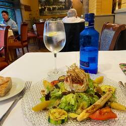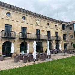 The food in their café (not their 1* Michelin restaurant) is fine and reasonably priced. I’ve had ice delivered to my room for my knees, I’ve wrung out my clothes in the thickest towels I’ve ever had on the Camino, so I am in pretty good shape.
