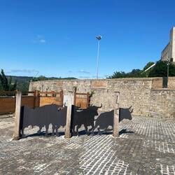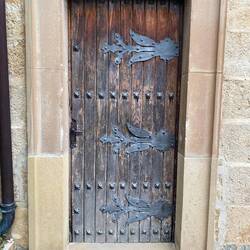 Last night, Guadalupe (who is not a nun but a “consagrada”) told me a sad story with a very happy ending. Last fall, vandals set fire to the ancient doors at San Miguel de Aralar (the church that I walked up to yesterday). A boat building company in San Sebastián uses wood from this area to make replicas of old ships. When it heard about the vandalism, the company offered to make replacement doors, using the same type of wood and from the same place that the doors had originally been made from. Yesterday, the doors left San Sebastián, on a cart pulled by oxen. They will stop in villages along the way, with festivities at each stop, and on Sunday they will arrive and be installed.