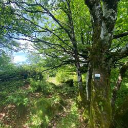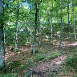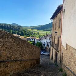 Walking the Camino route between these two towns would have been a pretty straight shot of about 10 km, so I had spent some time at home getting routes that I could add on. My first choice was to walk up in a beech and oak forest where there were lots of old “bordas” for livestock. The Ruta de las Bordas, but I had to get to the starting point. My first attempt was on a route that I tried to put together at home on wikiloc —fail. Then I tried to use mapy— fail. Finally, I asked a young woman out walking — success. But since I had lost almost 2 hours wandering around the forest looking for the trail, once I finally got there, I decided to cut it short after a couple of hours and get to my hotel in Arbizu. 22 km and 400 m are plenty for this old body in 85F/30C degree temperatures.
