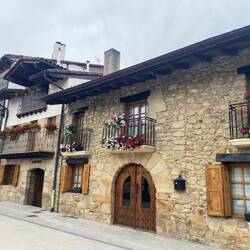 I passed through several villages, 2 or 3 km apart from each other. All of them had some 18th century caseríos, many beautifully restored with their coats of arms and flower pots filled with red and pink flowers. And two very old bridges.