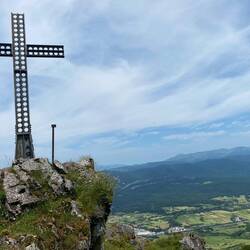 By about 10, I was checking into my place for the night, since it was only 14 km away. I pulled up a few GPS tracks for local routes I had stored and opted for the one up to Bagagain, one of the peaks close to town that has a cross on top and is surrounded by a beech forest. There are of course good views all around.