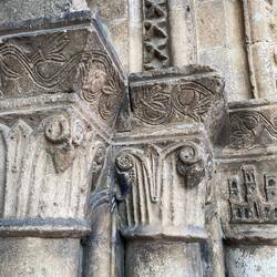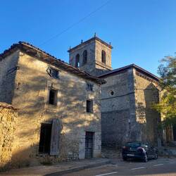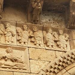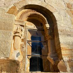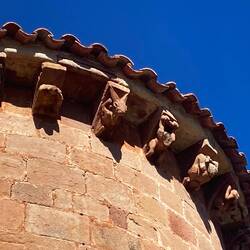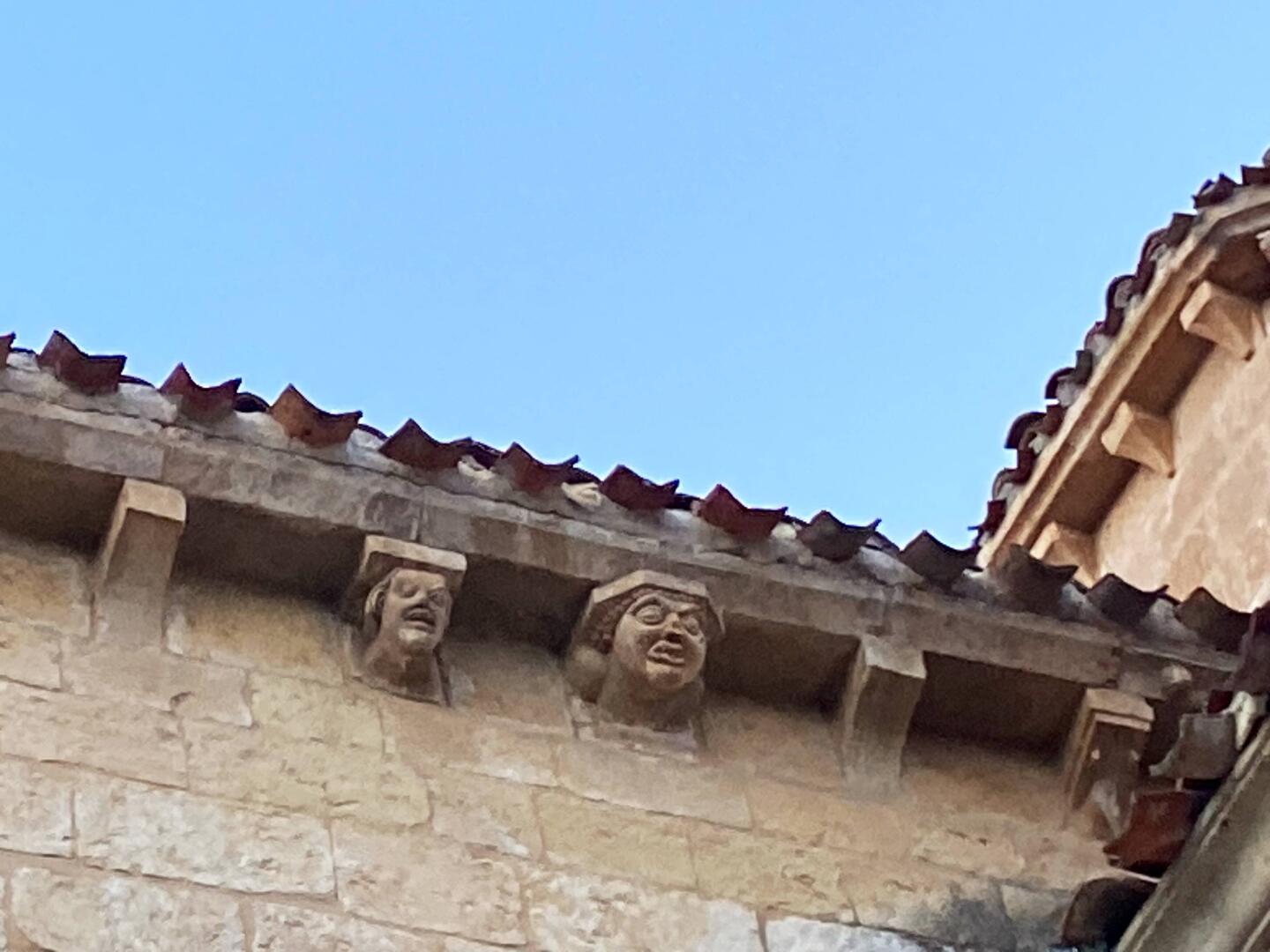 This was a surprisingly pleasant walk. It went through at least four little villages, and in nearly all of them, I stopped to chat. Once with a señora, watering her flowers, once with a guy picking green beans in his garden, once with two kids who were going to help their dad harvest potatoes. And at least three or four churches with little bits and pieces of Romanesque! — windows, arches, corbels. So there were lots of reasons to dilly dally, at the one church closest to my final destination, I was pretty sure I had seen some more of those X-rated corbels, and sure enough an online source confirmed it. I’m no expert in erotic carvings,, but these did look very suggestive from afar. I noticed that there was a fair amount of what looked like damage on some of them, and it reminded me what an old man once told me outside a similar church – that the priest had told them when they were young to throw stones at those carvings because they had no place outside a house of worship and we’re disgusting. Looks like the boys of this town might have had some success with that.