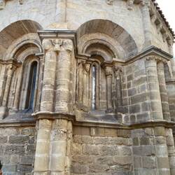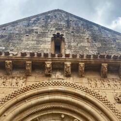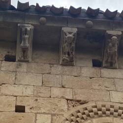 Beautiful windows and apses, and many varied corbels— animals, fantastic figures, a few humans. Oh I would have loved to get inside. I am now 0 for 3 when it comes to the standout Romanesque churches on this route. But the exterior was beautiful itself, and I was still thinking about those rock hermitages (and I decided they should be called rock cathedrals), so I couldn’t get too upset.