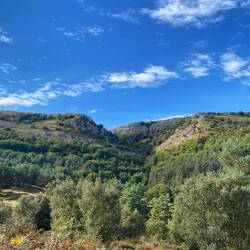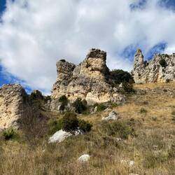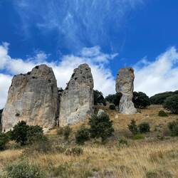 I am back on the official Camino Olvidado. The last few days I have been walking through the “Montes“ of the province of Burgos. Montes are bigger than hills but not big enough to be called “montañas.” In my experience, they are usually in the 700 to 1000 m range (that is about 2 to 3000 feet above sea level). This Camino takes a route that goes up and down and across them rather than around them, meaning that most days there are several multi-hundred meter ascents. The montes are owned by the towns and villages in the area. In the old days, they were a source of firewood for the villagers, sometimes mushrooms. Today they are sometimes used for timbering or recreation like hiking or rock-climbing.