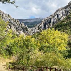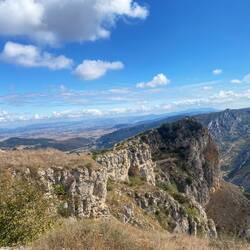 I had hoped to add a big loop at the end that would take me way up high. I started out from the train station and made it up a couple of K to the fortress ruins that date to the 6 th C. Beautiful views, nice place for a rest. At that point, I had tracks to climb up to a peak about 500 m above me. I started up, but the trail was extremely steep and extremely narrow and extremely rocky. After five or 10 minutes, having sampled what it would be like for me going down, I decided to turn around and head back down.