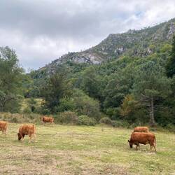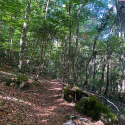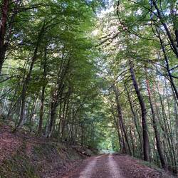 I saw on my tracks that I had three of these ascents today, each one between 250 and 300 m. The walk was gorgeous, nothing spectacular, just one beautiful mountain forest after another. No eucalyptus trees, just oak, pines, and beech trees that were starting to turn yellow.