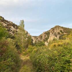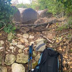 Well, it was a lovely walk, but the waterfalls were dry and the path up to the hermitage was totally overgrown and filled with prickly bushes. I saw more people today than any other day so far – three couples and one single guy walking, and one cyclist.