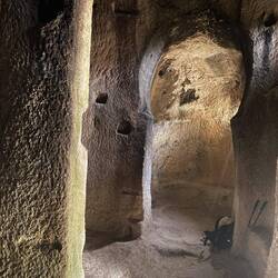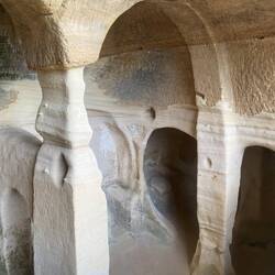 That was a terrific decision. I was totally unprepared for how amazing these two places were. I have been in a number of rock hermitages, usually a little praying nook carved into stone with openings on the sides. These were two stories, with arches going all the way up from floor to the top, several separate spaces on each floor, and one had what must have been an altar. The 10th C one even had a horseshoe arch!