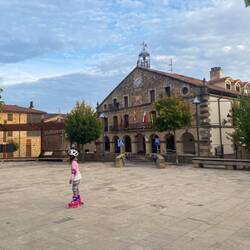 The last 8 km were pretty much of a slog, on the side of sunny but untraveled road. I’m in a cute place in the pretty unremarkable town of Polientes. But the kids are in the plaza and having fun.