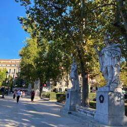I hopped in a cab and went to the Suanzes metro stop to meet a camino forum friend, @pelegrin. Instant connection with lots to talk about. After lunch, we walked around two old estates which are now public parks. The owners (counts, dukes, or something similar) were able to strike a deal with the city of Madrid – you give us permission to build apartment buildings over here, and we’ll give you all the rest of the land.