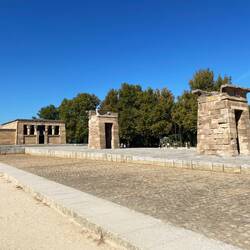 After a five minute walk, I got to the Templo de Debod, built in the 2C BC to the gods of Amun and Isis. It was a gift from the Egyptian government when they built the Aswan dam and flooded a lot of ancient sites. Other temples went to New York, Turin, and Leiden). Admission is free, but you have to reserve online ahead of time, only 15 visitors per half hour slot. There were many disappointed arrivals when I was there.
