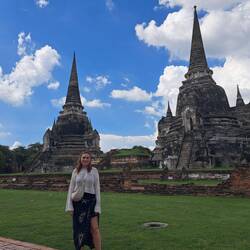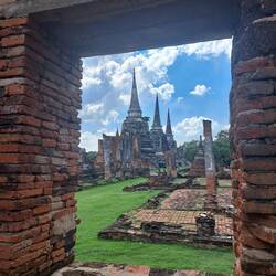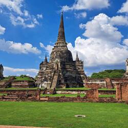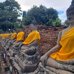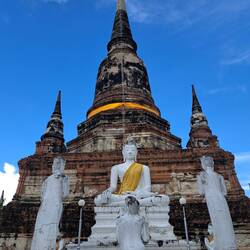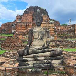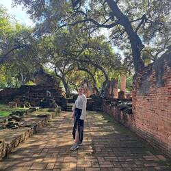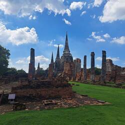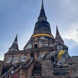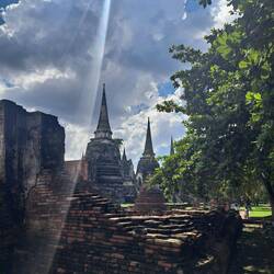 Dritter Halt: Nach dem Besuch der Märkte ging es rund zwei Stunden Autofahrt in Richtung Norden. Unser Ziel war Ayutthaya, die alte Hauptstadt Thailands. Die Stadt war früher die Hauptstadt des Königreichs Siam und hatte von 1350 bis zu seiner Zerstörung durch die Burmesen im Jahr 1767 einen blühenden internationalen Handelshafen. Die Ruinen der Altstadt sind heute der Geschichtspark Ayutthaya. Mit archäologischen Stätten mit Palästen, buddhistischen Tempeln, Klöstern und Statuen. Für mich war das das absolute Highlight des Tages. Es ist echt unglaublich, dass ich jetzt wirklich vor dieser Anlage stehe und mit einem Sonnenschirm über die Anlage zu laufe hat einfach eine ganz besondere Atmosphäre. 🌞 Die Rückfahrt verging zum Glück schnell, und schon währenddessen merkte ich, dass ich mein nächstes Ziel direkt ansteuern muss. Wenn ich vorher ins Hotel fahre, käme ich vermutlich nicht mehr hoch.