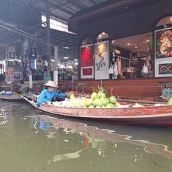 Zweiter Halt: Eine Bootstour über den schwimmenden Markt Damnoen Saduak. Tumtum sagt, unter der Woche ist es der einzige Markt dieser Art, welcher in Betrieb ist. Man kann zwar irgendwie ahnen, wie es am Wochenende unter den Thais selbst zugeht, aber in diesem Fall war es ein Erlebnis, das eher für Touristen ausgelegt ist. Das hat die Sache nicht unbedingt weniger schön gemacht, aber halt auch nicht so authentisch. 🛶