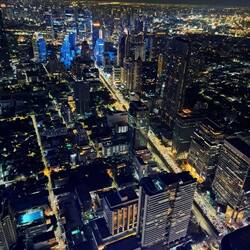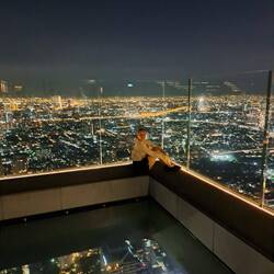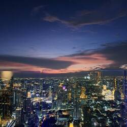 Vierter Halt: Das Maha Nakhon ist mit 313 Metern und 77 Etagen das zweithöchste Gebäude in Bangkok und bietet mit seiner super schönen Dachterrasse und dem Skywalk eine Aussicht mit Adrenalinstoß. Um schneller voranzukommen wurde es Zeit mir mein erstes Roller-Taxi zu buchen. Für mich die beste Art, um in der Stadt voranzukommen. Es ist faszinierend, wie selbstverständlich sich die Roller an allen Autos vorbeischlängeln. Aber es ist auch verrückt zu sehen, dass der eigene Fahrer Kochvideos auf dem Handy laufen hat während einem der Fahrtwind um die Ohren peitscht. Angekommen am Mahanakhon ging es mit dem Aufzug rasant nach oben und nach einem kurzen Druckausgleich in den Ohren konnte ich Bangkok aus einer ganz anderen Perspektive bestaunen. Das Foto auf dem Glasdach im Kasten, ging es fix wwieder da runter um dann die Aussicht und den Moment wirken zu lassen. So weit oben zu sein bedeutet auch, dass man mit einem Gewitter in der Ferne auf Augenhöhe ist. Als ob der Ausblick nicht schon beeindruckend genug war, sah ich dem Spiel der Wolken und Blitze aus sicherer Entfernung noch etwas zu. Auf dem Weg zurück nach unten konnte man noch eine Lichtinstallation durchqueren. Hätte ich keine Bilder und Videos, wüsste ich glaube ich nicht mehr, dass ich da war. So voll und reiz überflutet war mein Kopf. Der konnte auch nur noch einen Gedanken fassen. Abendessen, Heim und schlafen.