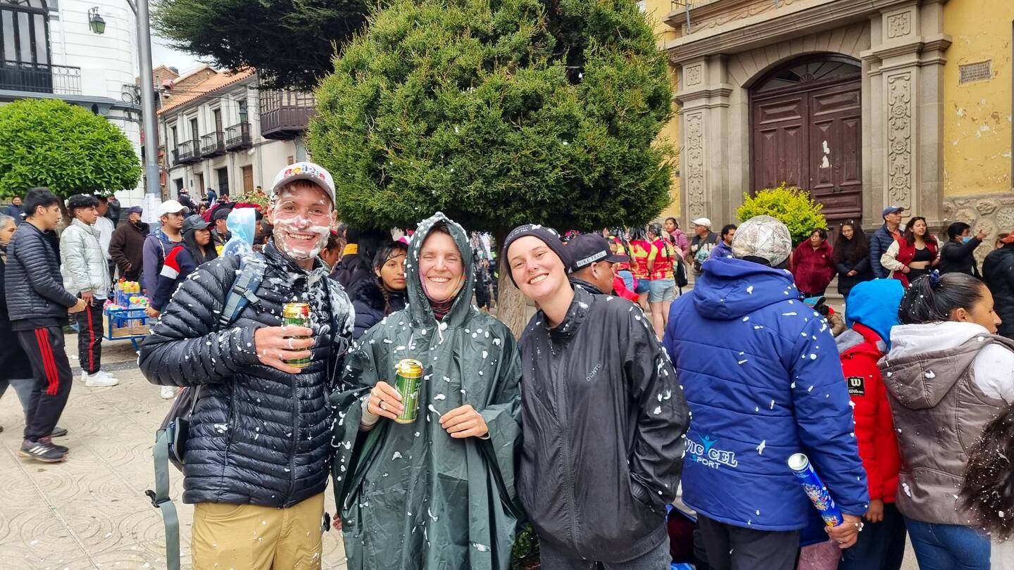 Potosí bedeutet auf Quechua „Lärm“. Das wirft natürlich die Frage auf, wieso eine Stadt in den Bergen einen so positiven Namen trägt. Das liegt natürlich an dem Berg, Cerro Rico, der in der unmittelbaren Nähe steht. Aber für uns stand zu Fasching vor allem eine Antwort parat: die Bolivianer lieben es zu feiern und das auch gerne sehr laut. Mit unseren Freunden Johannes und Charlotte (kennengelernt haben wir sie in Rurrenabaque im Regenwald und hier wieder getroffen) erkundeten wir den Fasching und waren auch von Regen und Schaumsprühflaschen nicht abzuschrecken. In vielen Ecken Boliviens wird nämlich statt Konfetti aus Sprühflaschen Seife verschossen. Zum Glück roch diese ganz ok und war rückstandslos von der Kleidung zu entfernen. Insgesamt war der Fasching in Potosí ziemlich interessant und hat uns mal wieder gezeigt, dass das gemeinsame Feiern in allen Kulturen die Menschen zusammen bringt.