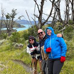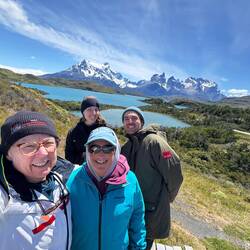 What could have been a potential big bummer turned into the best day ever. The plan for the day was for Alex (and our similarly endurance-athlete friends Kim and Laura) to do the big 12-mile hike to Mirador Los Torres and for the less ambitious, our sailing buddy Carol Cronin and I, to do one or two of the moderate/easy hikes. Kim drove to our lodge early to pick up Alex and dropped Carol so I could drive us to our destinations. After a leisurely breakfast, I can’t find the car keys and assume Alex has accidentally taken them with him. Cell service is not good in the park, so my pleas were not received. After exploring all options (there were none), the staff asked a family staying at the lodge who agreed to take us to the hike we had planned to do, Mirador Los Cuernos. We now have a lovely couple and their toddler as our Uber drivers.