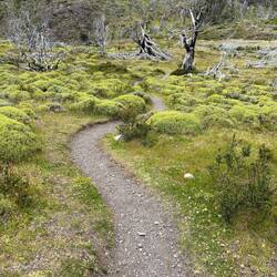 The route is essentially up the valley made by the river that the lake at the top drains into, although it doesn’t really follow the grade of the river. It occasionally goes way up above the valley in places, then down across various foot bridges.