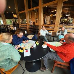 We eventually scampered down as the rain started again and drove a bit further into the park to see a waterfall that connects two lakes and then headed back to the lodge. Even though the distances in the park are on the order of a few to 10km, it takes a while in the gravel at 20-30 km/hr. We had a nice dinner with Steve, Janet, Kim, Carol and Laura for our last night.Read more
