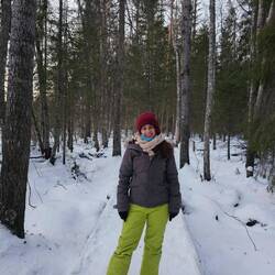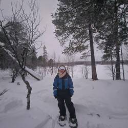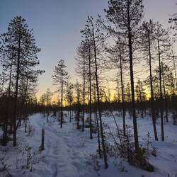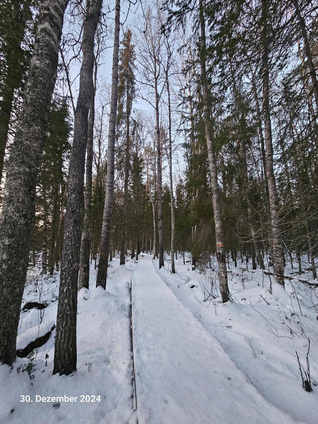 Heute unternahmen wir einen Spaziergang zu den Jäniskoski Stromschnellen, über welche eine Fussgängerbrücke führt. Hierfür liefen wir durch die verschneite Landschaft, teils auf gutもっと詳しく