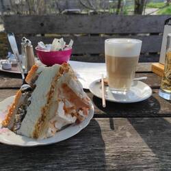 Weiter geht's und meine Zeitkalkulation muss überarbeitet werden. Bis 18.00h muss ich im Hotel sein und will vorher aber im Café Hasenacker unbedingt eins von den riesigen Stücken Torte essen. Das wird knapp und ich habe auch keine Lust auf Stress.