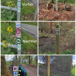 Samstag ging es los auf den Habichtswaldsteig, Etappe 3+4. Als Wegepatin für Märchenlandweg, Kasselsteig und Habichtswaldsteig (HWS) war ich Ende letzten Jahres schon in Tagestouren auf den ersten Abschnitten unterwegs, hab nach den Aufklebern geguckt und ggf. erneuert. Von der Menge her ist hier schon ordentlich "tapeziert" worden 😉