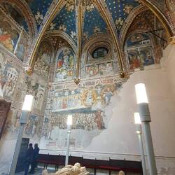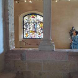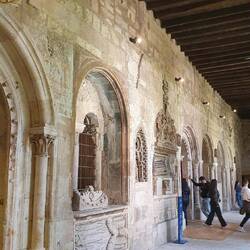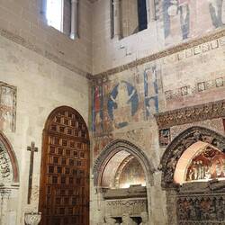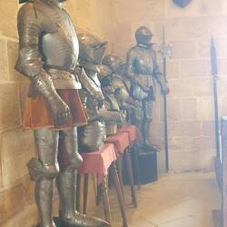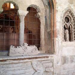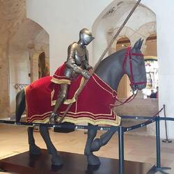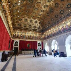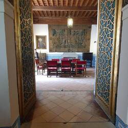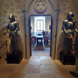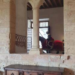 Interni: Decorati con stucchi, armature, arazzi e mobili d'epoca.