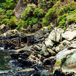 When I emerged onto the beach, I paused to take in the view. I was standing next to a rock when, out of the corner of my eye, I saw it suddenly stretch and look at me. What a fright! After gathering my wits, I realized the beach wasn’t scattered with shiny rocks—it was full of seals, basking in the sun.