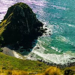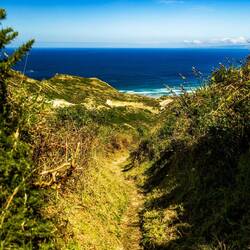 The hike to Sandfly Bay Beach was only 2 km—how hard could it be, even with a pretty heavy backpack? The way down was manageable, though tough on the knees. It was quite steep, and the sand made sure you never had good grip, forcing you to use extra strength to dig your feet out with each step.