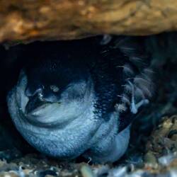 While waiting, I met a woman who was also hoping to see penguins. She pointed out a tiny nesting chick tucked under some rocks, waiting for its parents to return. It was a kororā, the world’s smallest penguin!