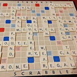 My gaming skills were off the charts. I was way ahead in points throughout the game. I just wasn't able to place one letter: V. V had 4 points. My score: 197. Andrew had caught up in points, but I wasn't worried.