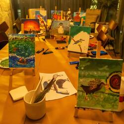 But things were looking up toward the end of the day! The hostel hosted a Paint and Sip night, which I gladly signed up for. And I finally got to drink an Aperol! Not the most important part of the night, of course. (Or was it? :D) I met seven new people, and with some wine (+ Aperol), painting, and good conversation, the night was shaping up well. Our assignment: Flightless Birds. After lively chit-chat at the beginning, the room went silent as everyone focused intensely, only interrupted by occasional laughs of desperation. What a variety of paintings! It‘s always fascinating to see how people come up with their very own interpretation and what can be achieved in only two hours.