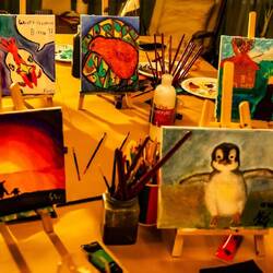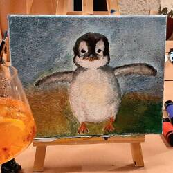 P.S. My painting may reflect my deep yearning for cute penguins, given my thus-far unsuccessful penguin hunt. I also enjoyed the chicken painting and the Bob Ross-inspired sunset featuring a mummy penguin and her steroid-abusing chick (the artist’s words, not mine). :D