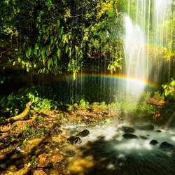 Be that as it may, I enjoyed this place plenty! Especially capturing the little rainbow on my camera—it was only visible in the middle of the stream or from the other side. Believe you me, getting across was pretty slippery! With the camera attached to me, I wondered more than once whether the rocks I was putting my weight on were steady enough. Spoiler alert: most of them weren‘t. 😁