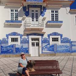 Und Action, erstmal mit dem Fahrrad 7 km nach Ovar und von dort aus weiter mit dem Zug nach Aveiro. Busfahren dürfen Hunde nicht, aber Zug fahren. Die Lotte muss dafür einen Maulkorb tragen, findet sie doof, trägt es aber mit etwas Murren.