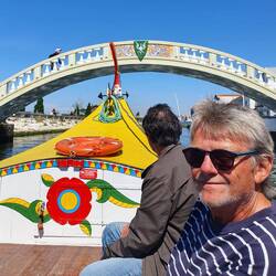"Dogs are free" erzählen uns die fleißigen Anbieter der Moliceiro Touren. Und so buchen wir eine Kanalfahrt mit den buntbemalten Niedrigwasserbooten. Lustig geht's zu, ein Plausch mit einer Brasilianerin. Dann singt und tanzt der "Gondolieri" alle an Bord stimmen mit ein und sind bester Stimmung!