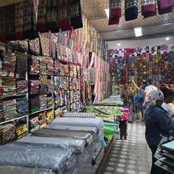 Aan de overzijde van de markt was een stoffen winkel waar ze volgens Daniel prachtige stoffen verkopen tegen een lage prijs, hij had gelijk de stoffen waren heel kleurrijk.