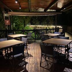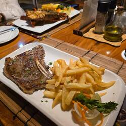 We besluiten om niet meer naar het dorp te lopen maar hier in ons motel te dineren.