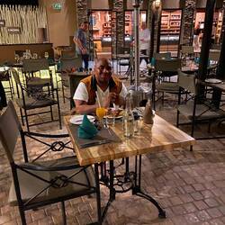Om zeven uur wandelen we naar het centrum hier vlakbij om wat te gaan eten, Johan besteld een