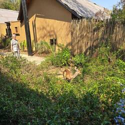 Na het ontbijt zijn we gaan wandelen om de omgeving van de prachtige lodge te bewonderen, er liepen verschillende dieren rond en het aapje wilde met me spelen, hij ging op zijn ruggetje liggen en was met zijn handjes en voetjes aan het trappelen ik wilde wel maar ja rabies, dat wil je liever niet, vraag maar aan Jantje , aapjes bijten hè 🤣