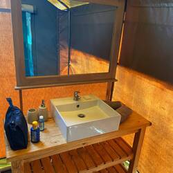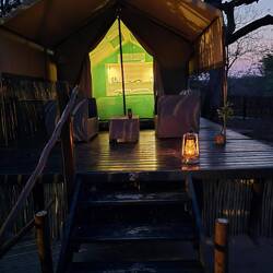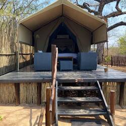 Nu terug in onze volgende lodge een prachtige tent om de nacht door te brengen, zo dadelijk buiten eten, de temperatuur is hier nu om 19.00 uur nog 35 graden, ons hoor je niet klagen.
